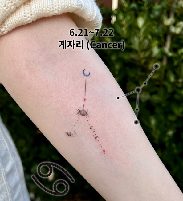 별자리 타투는 작게 새겨도 의미가 오래 남고, 감정과 기억을 담기 좋아서 많은 분들이 선택하는 디자인이에요.